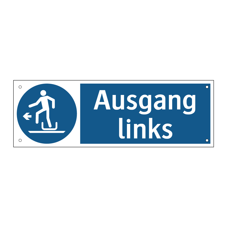 Diese Gebotsschild mit blauem Hintergrund und weißer Schrift ist ideal für die klare Kennzeichnung von Fluchtwegen. Sie weist unmissverständlich darauf hin, dass der Ausgang nach links führt, und sorgt so für eine sichere und geordnete Evakuierung im Notfall. Diese Beschilderung ist besonders geeignet für öffentliche Gebäude, Büros, Einkaufszentren und andere Einrichtungen, in denen eine klare Wegweisung entscheidend ist. Durch die deutliche Symbolik und die prägnante Botschaft wird die Orientierung erleichtert und die Sicherheit der Besucher und Mitarbeiter gewährleistet. Platzieren Sie diese Gebotsschild an strategischen Punkten, um die Navigation zu optimieren und die Einhaltung von Sicherheitsvorschriften zu unterstützen.