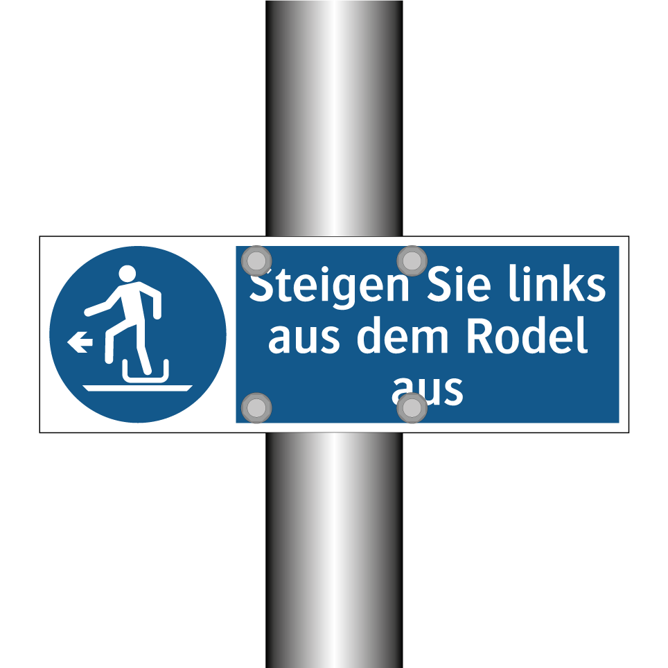 Gebotsschild mit dem Text Steigen Sie links aus dem Rodel aus