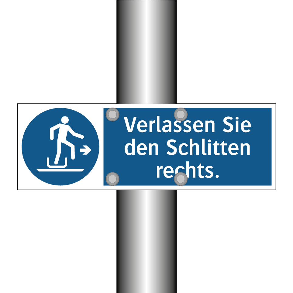 Gebotsschild mit dem Text Verlassen Sie den Schlitten rechts.