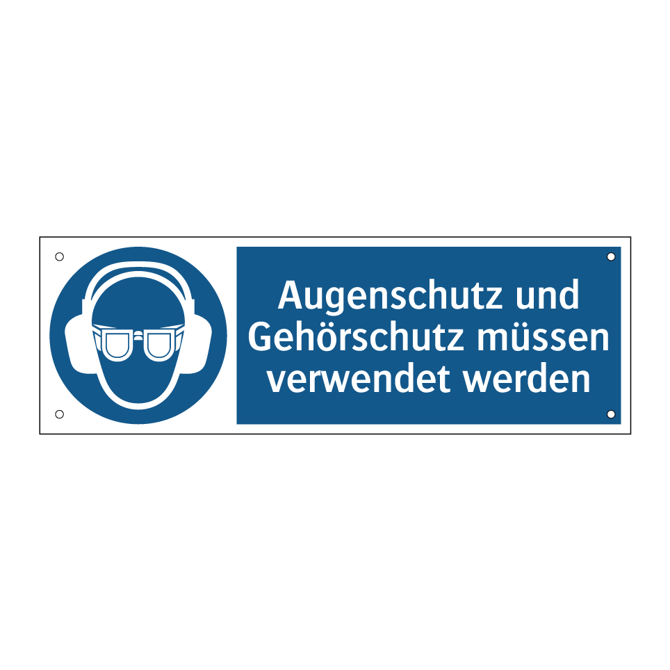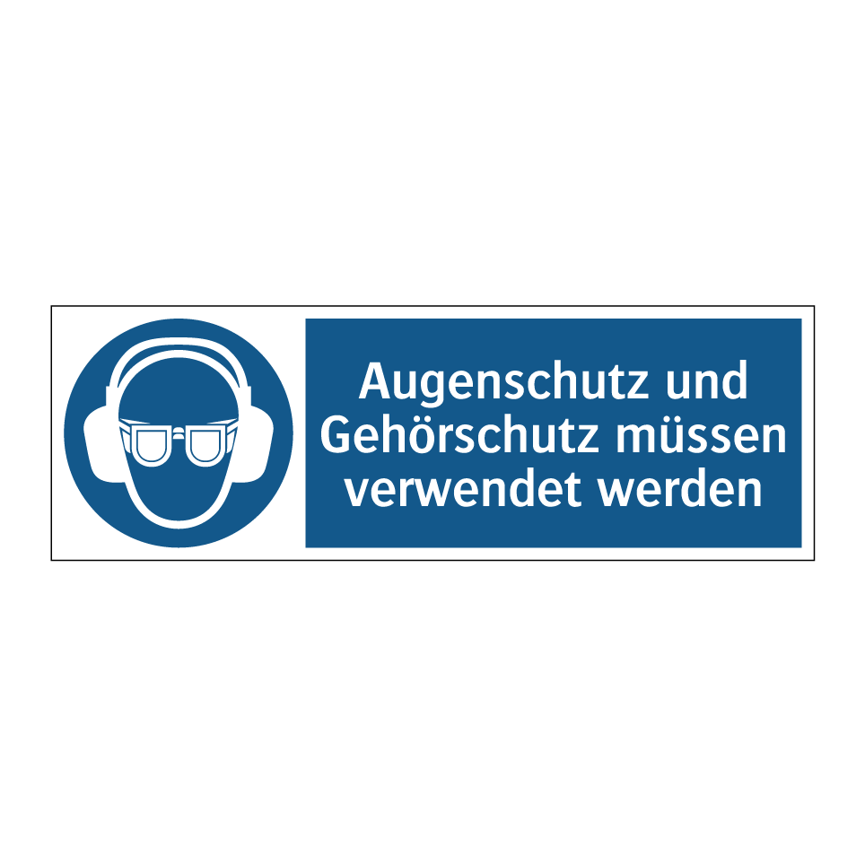 Gebotsschild mit dem Text Augenschutz und Gehörschutz müssen verwendet werden