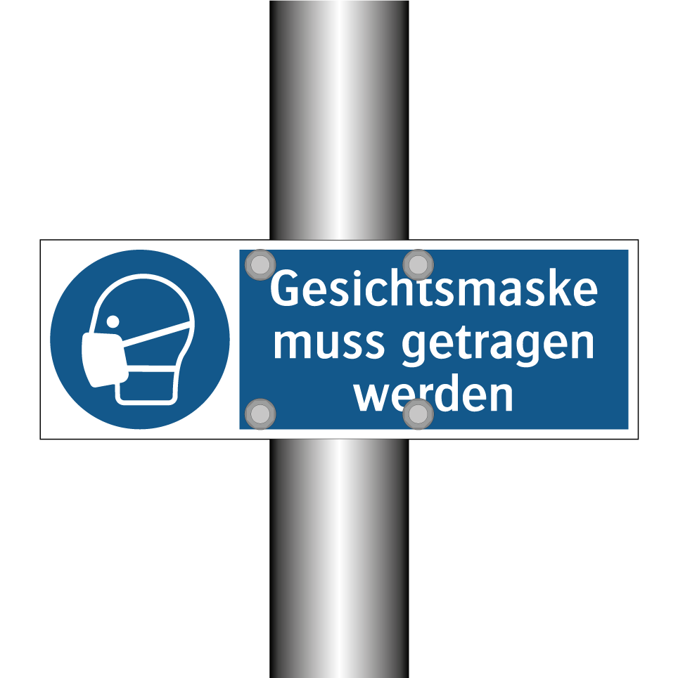 Gebotsschild mit dem Text Gesichtsmaske muss getragen werden
