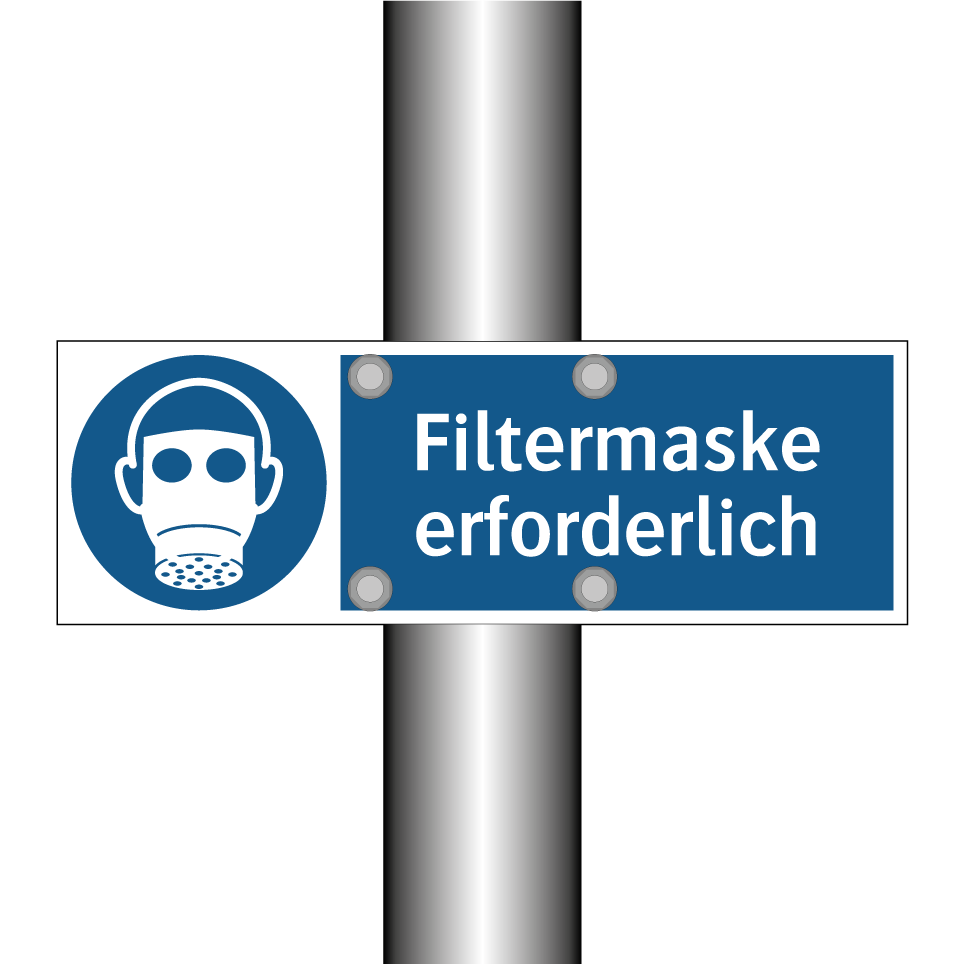 Gebotsschild mit dem Text Filtermaske erforderlich