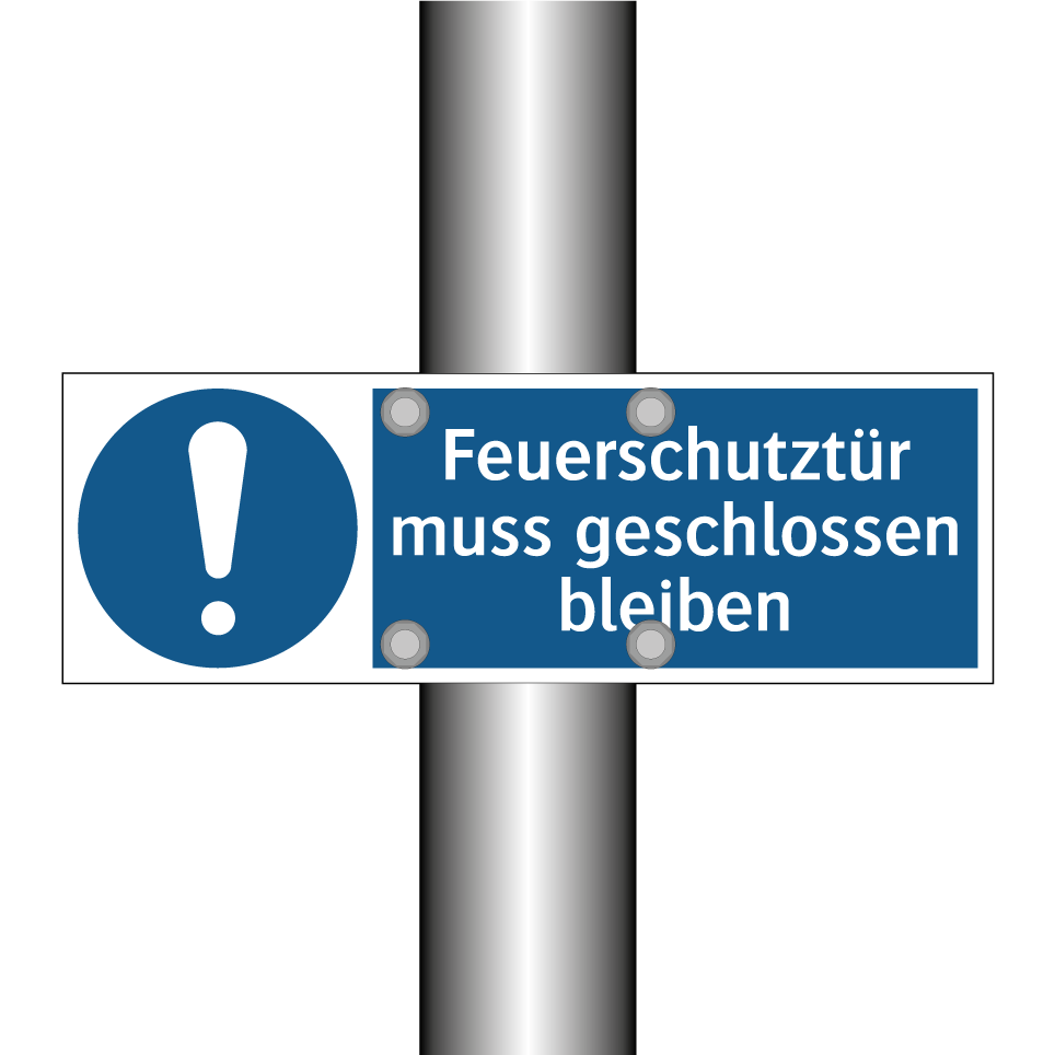 Gebotsschild mit dem Text Feuerschutztür muss geschlossen bleiben