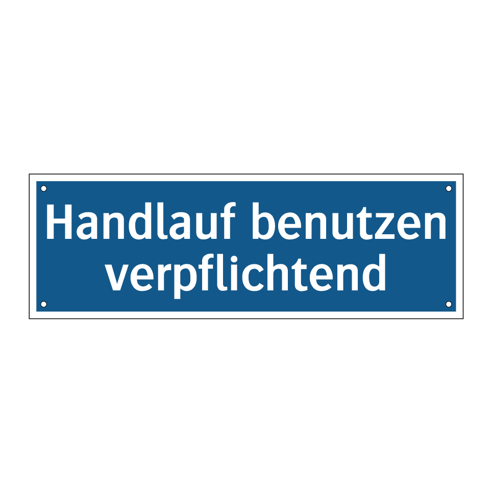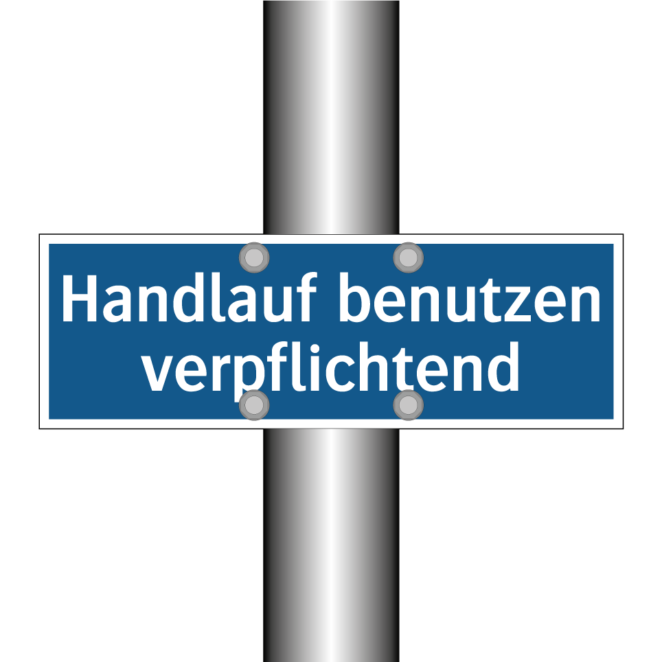 Gebotsschild mit dem Text Handlauf benutzen verpflichtend