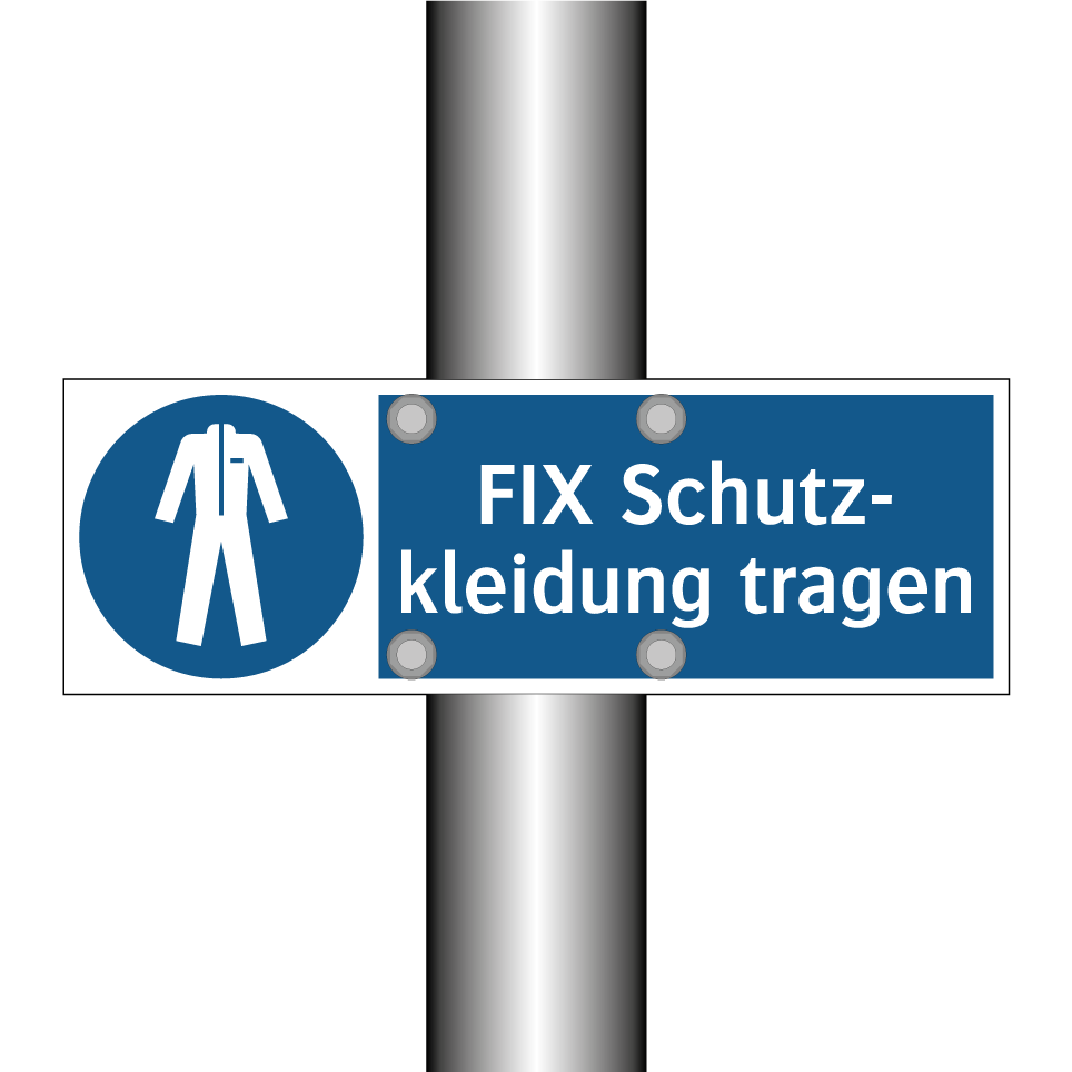 Gebotsschild mit dem Text FIX Schutz- kleidung tragen