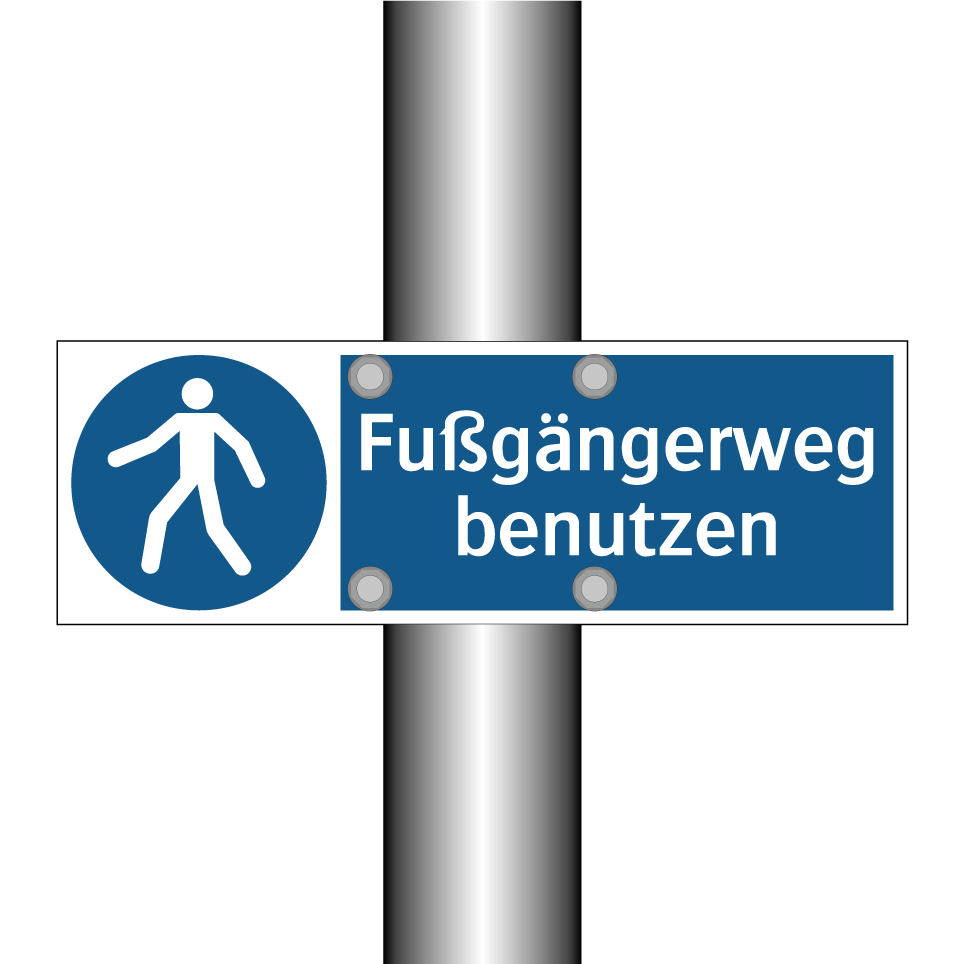 Gebotsschild mit dem Text Fußgängerweg benutzen
