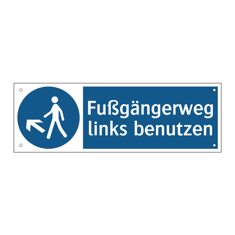 Gebotsschild mit dem Text Fußgängerweg links benutzen