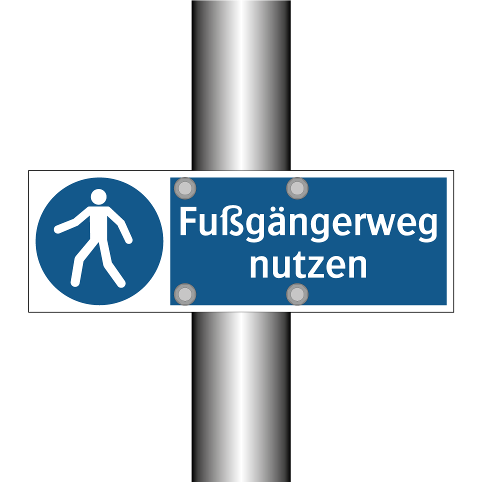 Gebotsschild mit dem Text Fußgängerweg nutzen