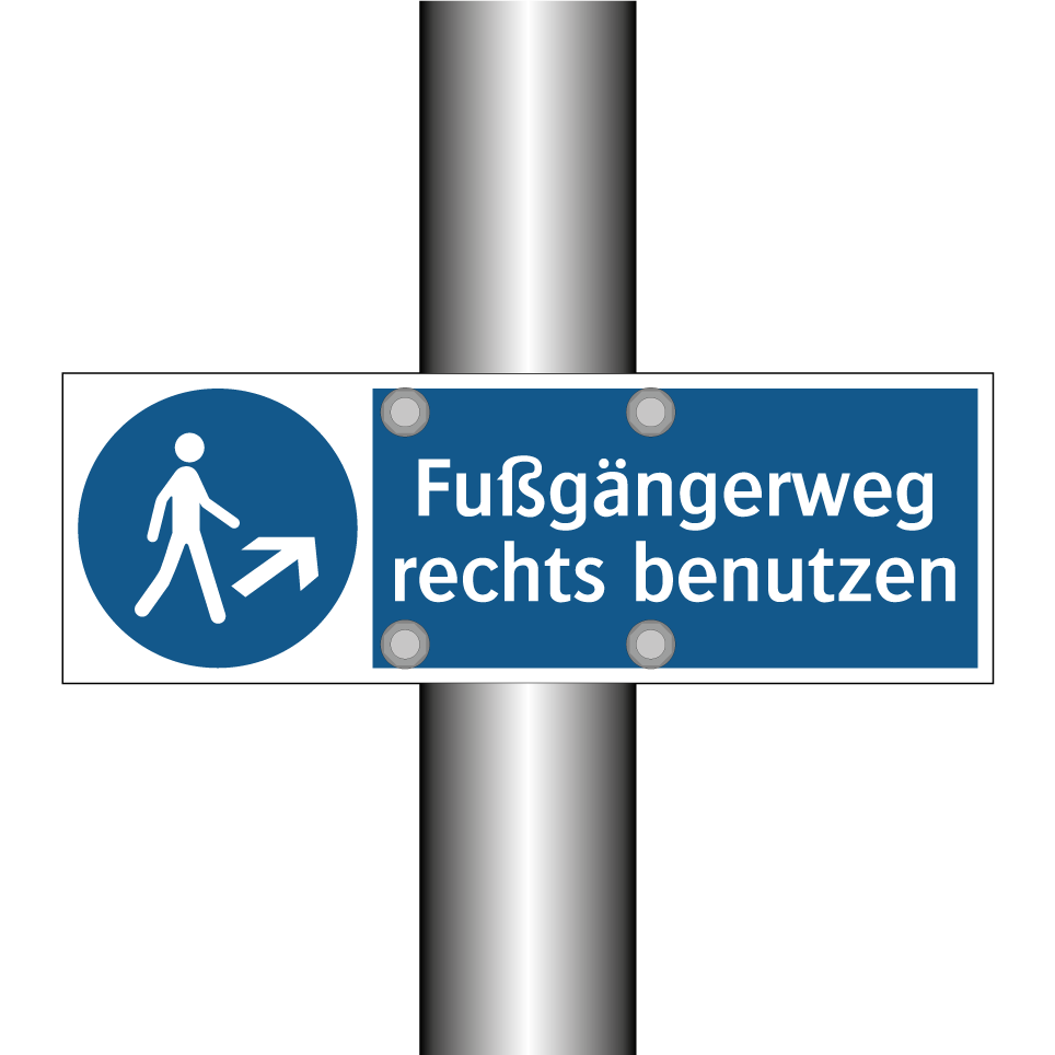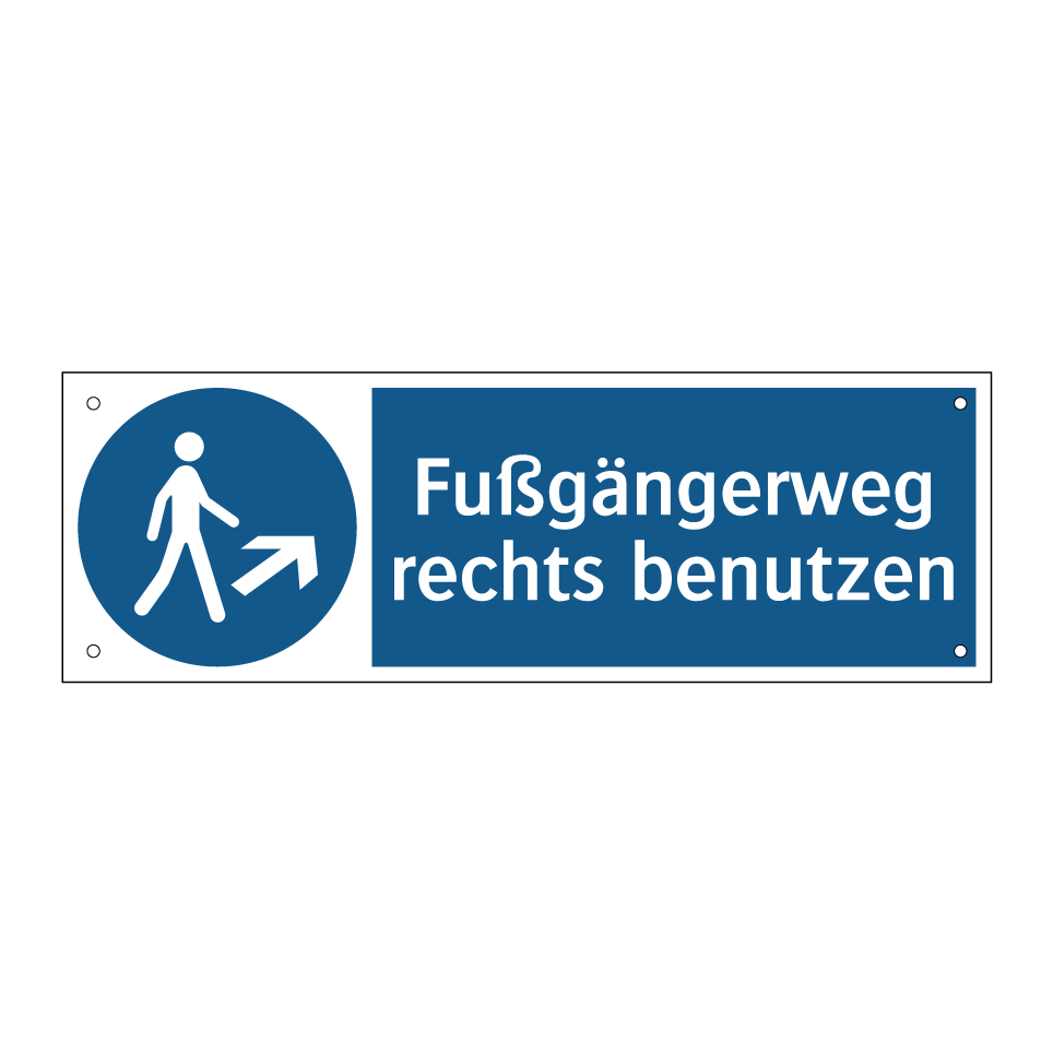 Gebotsschild mit dem Text Fußgängerweg rechts benutzen
