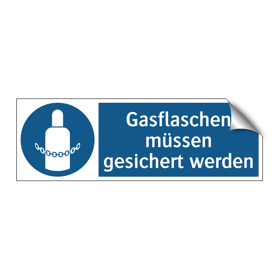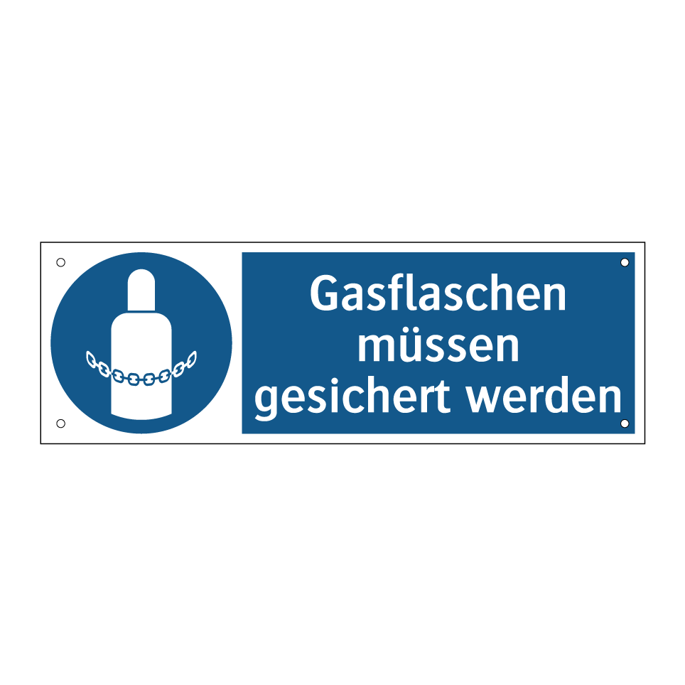 Gebotsschild mit dem Text Gasflaschen müssen gesichert werden