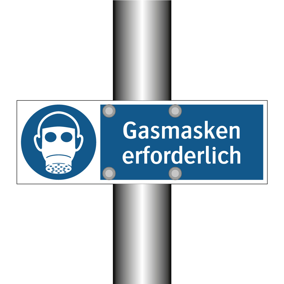 Gebotsschild mit dem Text Gasmasken erforderlich