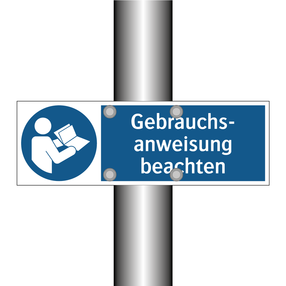 Gebotsschild mit dem Text Gebrauchs- anweisung beachten