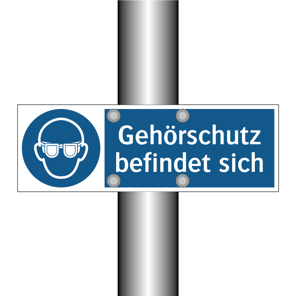 Gebotsschild mit dem Text Gehörschutz befindet sich