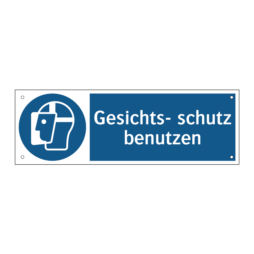 Gebotsschild mit dem Text Gesichts- schutz benutzen