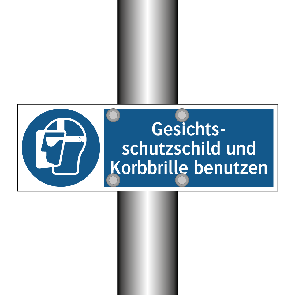 Gebotsschild mit dem Text Gesichts- schutzschild und Korbbrille benutzen