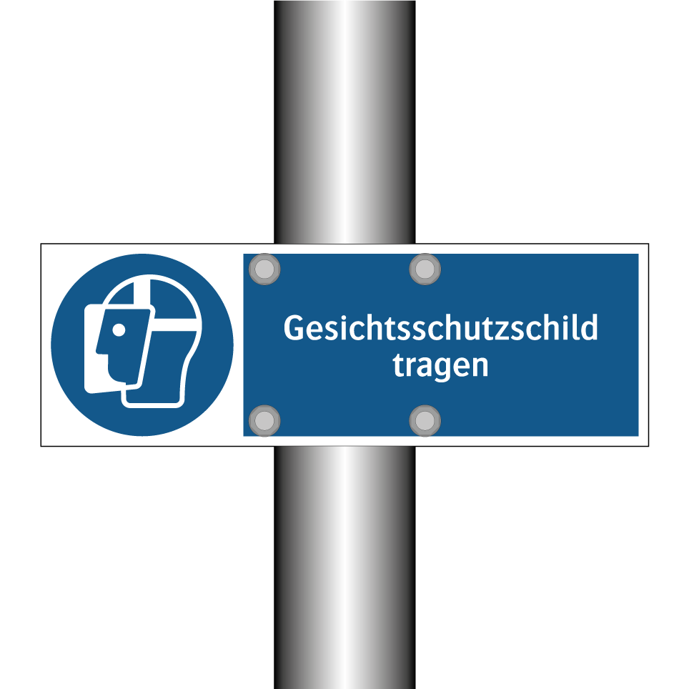 Gebotsschild mit dem Text Gesichtsschutzschild tragen