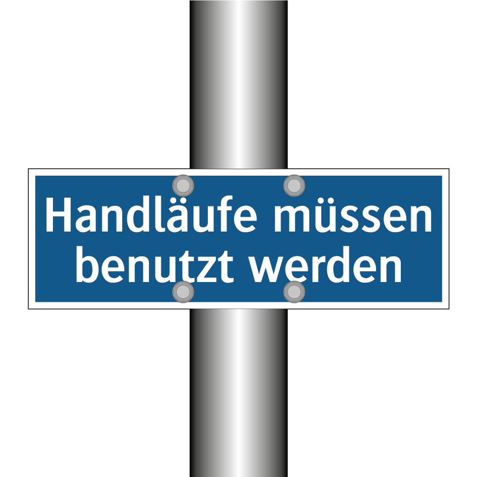 Gebotsschild mit dem Text Handläufe müssen benutzt werden