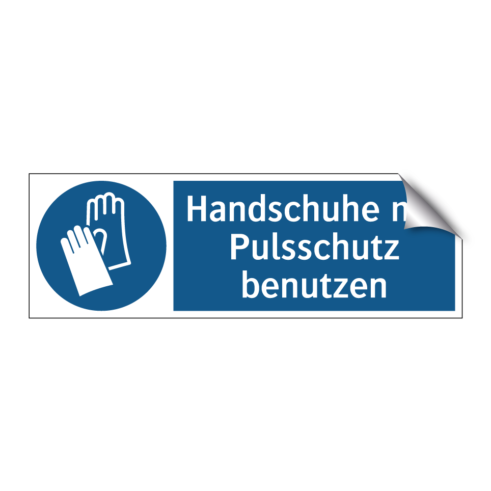 Gebotsschild mit dem Text Handschuhe mit Pulsschutz benutzen