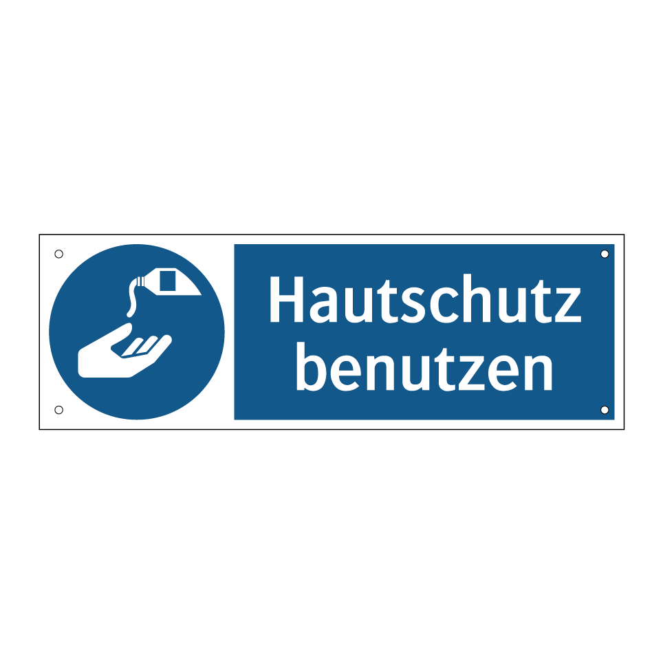 Gebotsschild mit dem Text Hautschutz benutzen