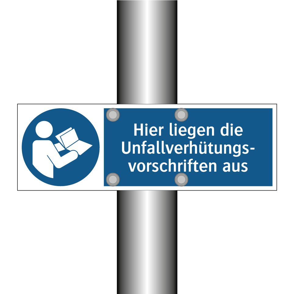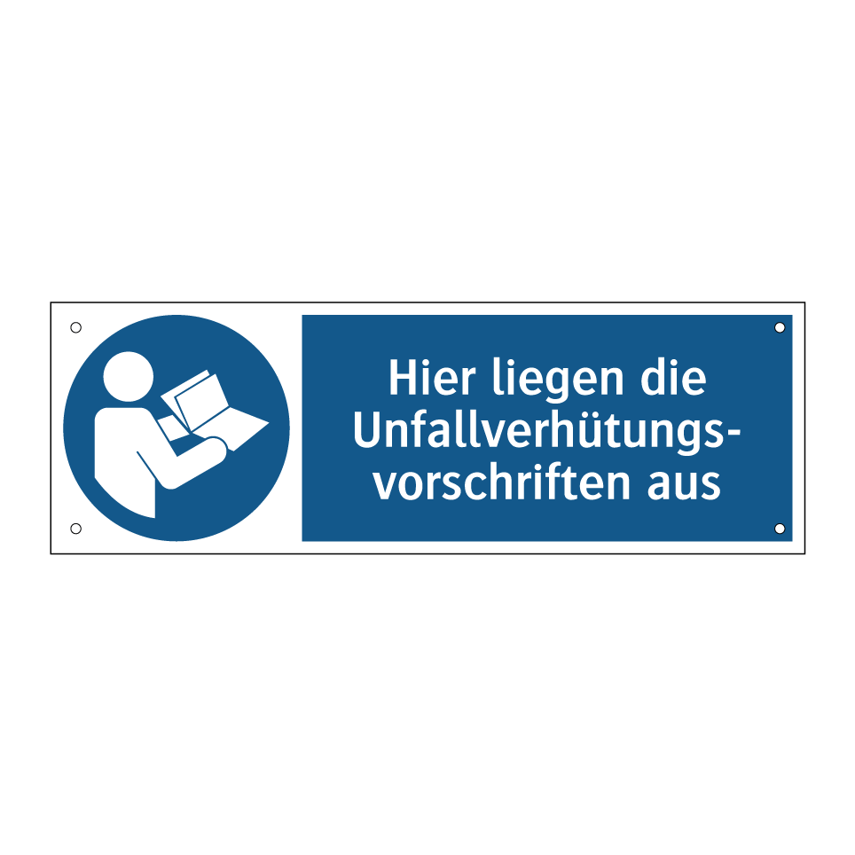 Gebotsschild mit dem Text Hier liegen die Unfallverhütungs- vorschriften aus