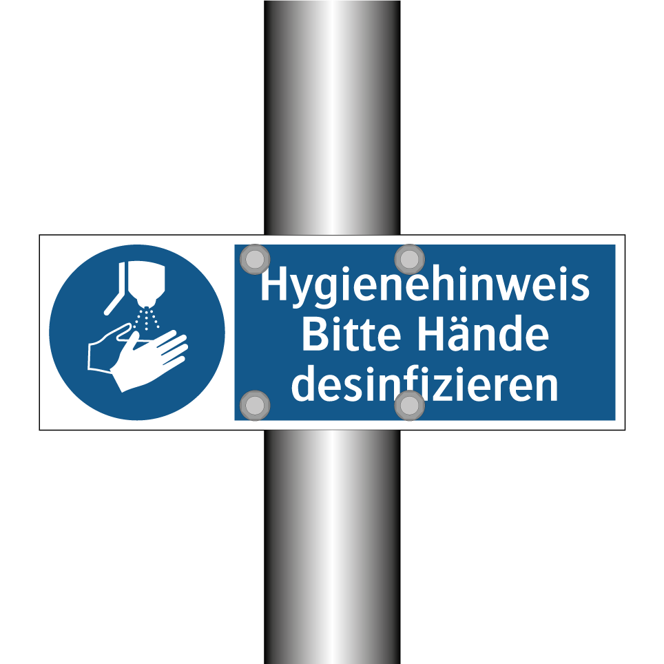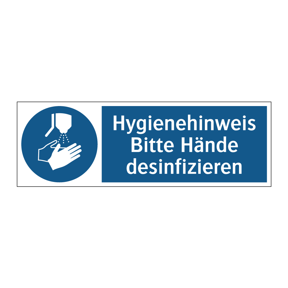 Gebotsschild mit dem Text Hygienehinweis Bitte Hände desinfizieren
