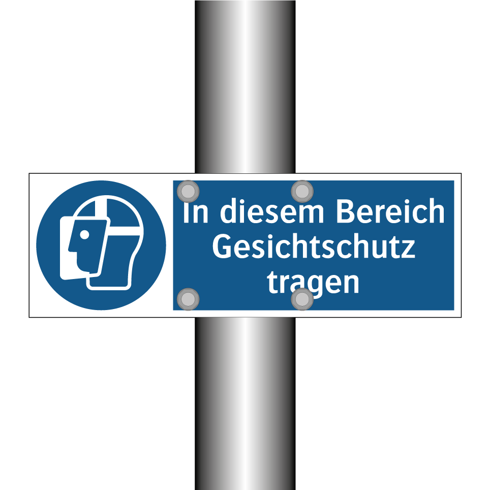 Gebotsschild mit dem Text In diesem Bereich Gesichtschutz tragen