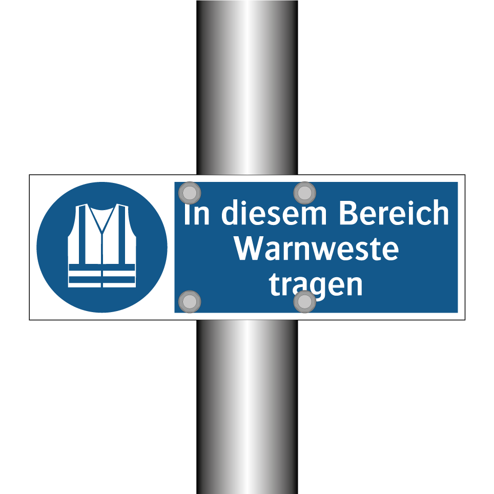 Gebotsschild mit dem Text In diesem Bereich Warnweste tragen