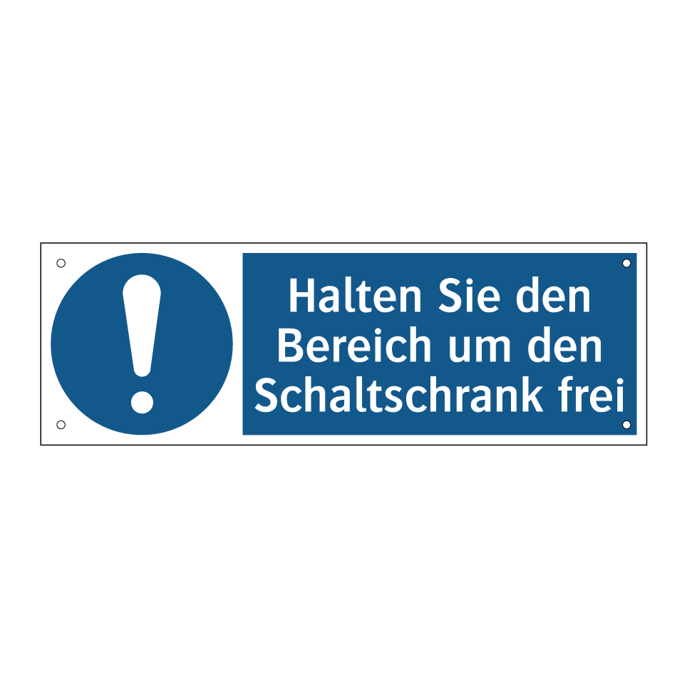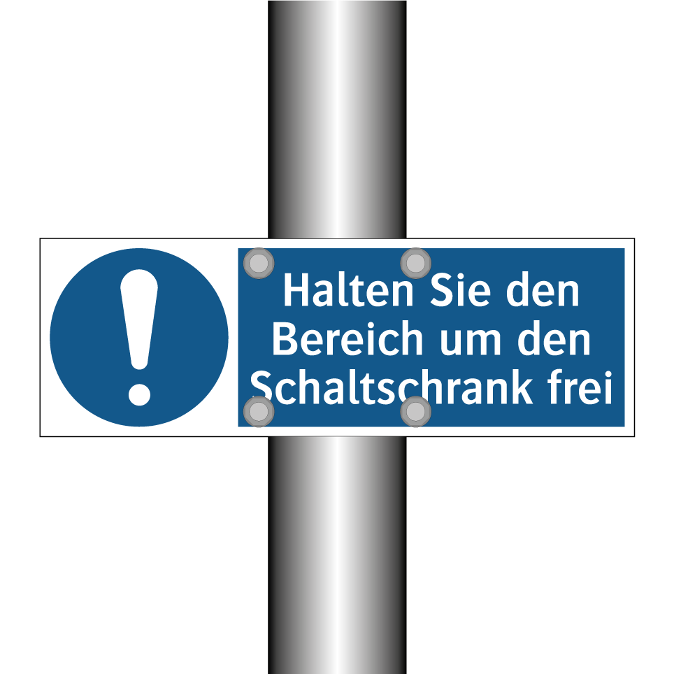 Gebotsschild mit dem Text Halten Sie den Bereich um den Schaltschrank frei