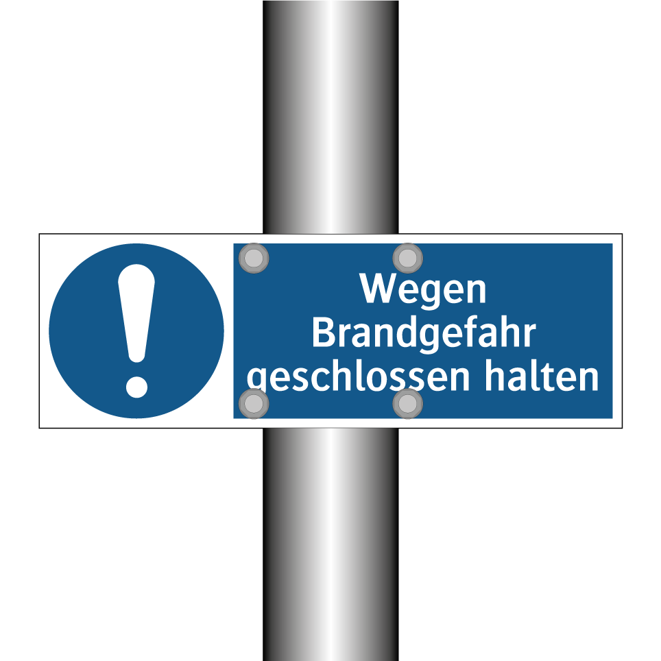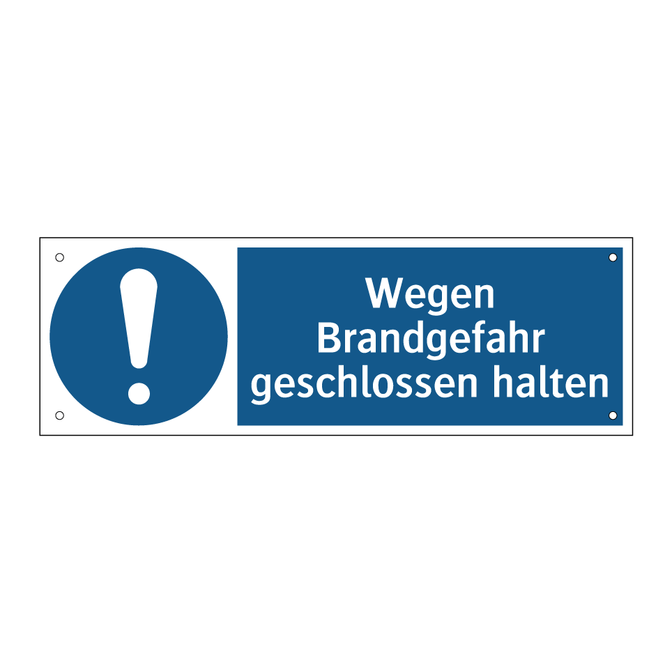 Gebotsschild mit dem Text Wegen Brandgefahr geschlossen halten