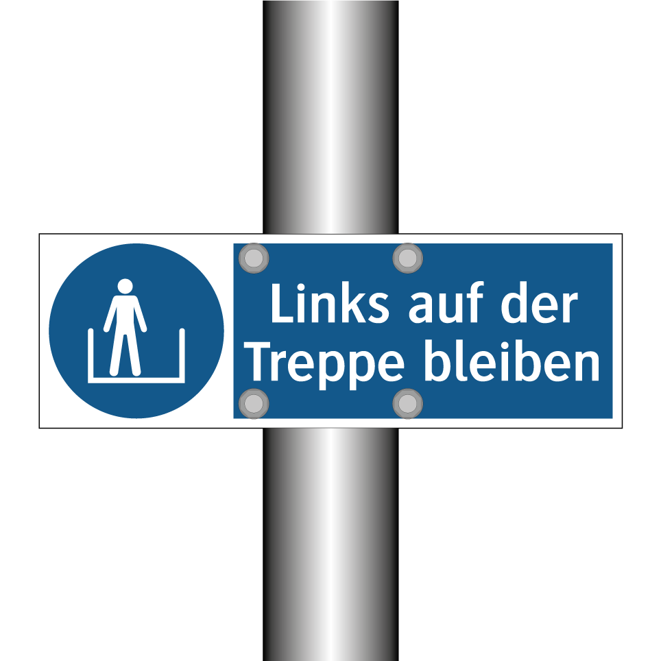 Gebotsschild mit dem Text Links auf der Treppe bleiben