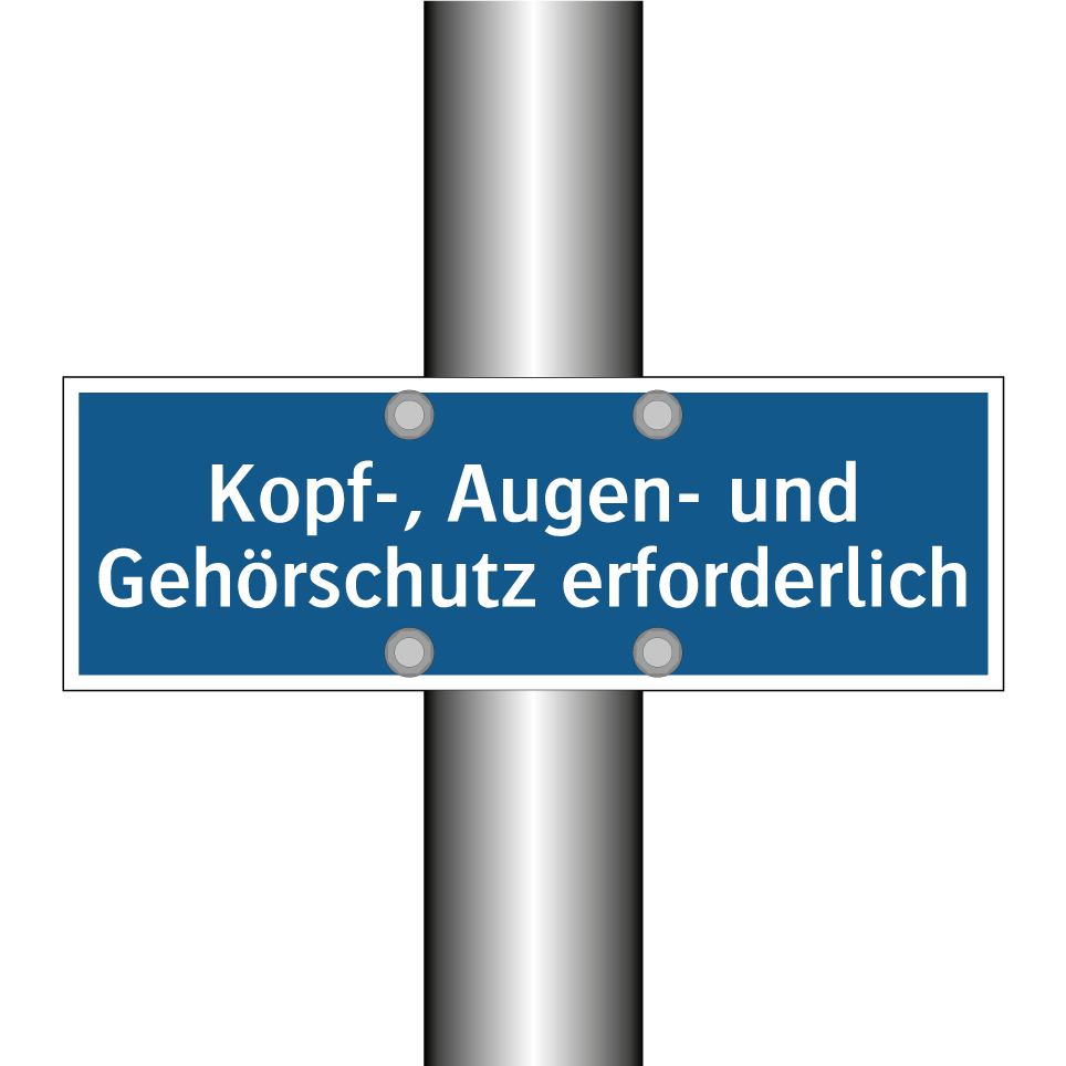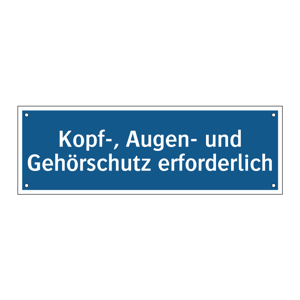Gebotsschild mit dem Text Kopf-, Augen- und Gehörschutz erforderlich