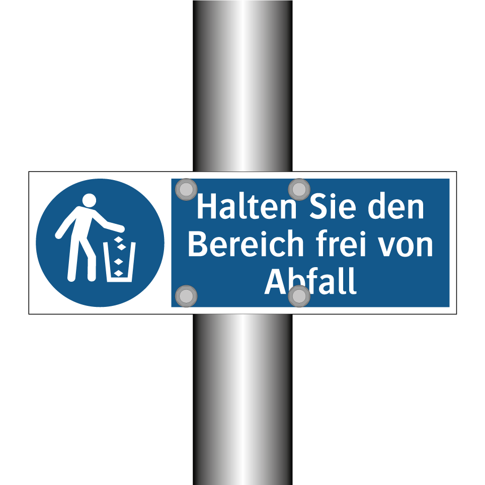 Gebotsschild mit dem Text Halten Sie den Bereich frei von Abfall