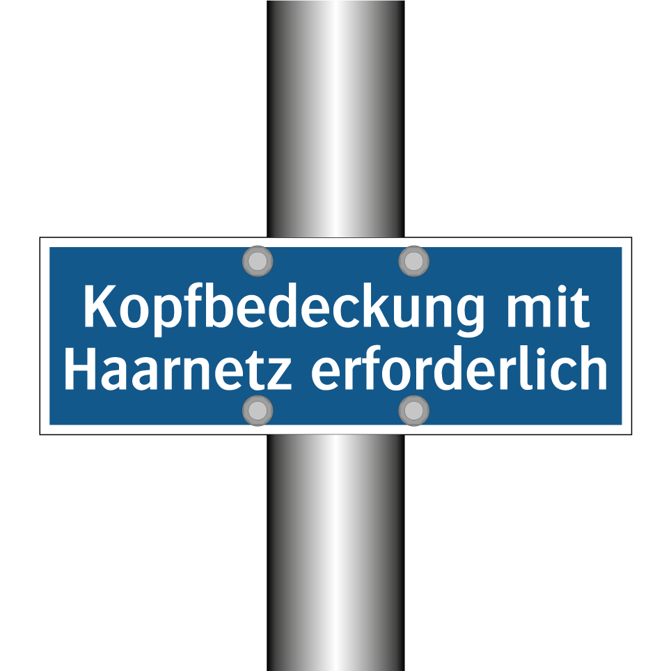 Gebotsschild mit dem Text Kopfbedeckung mit Haarnetz erforderlich