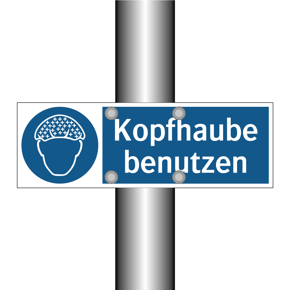 Gebotsschild mit dem Text Kopfhaube benutzen