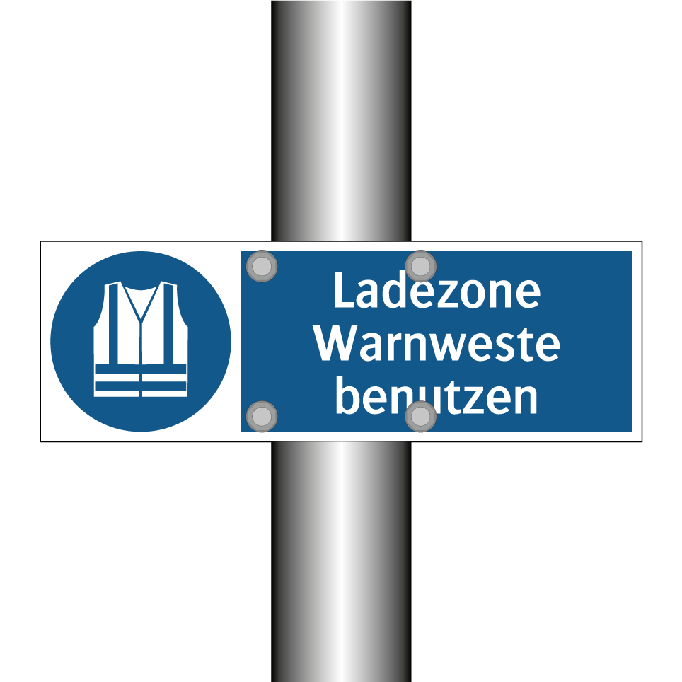 Gebotsschild mit dem Text Ladezone Warnweste benutzen