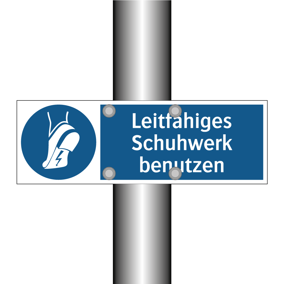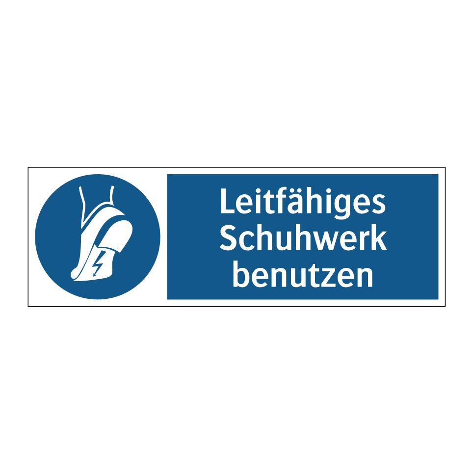 Gebotsschild mit dem Text Leitfähiges Schuhwerk benutzen