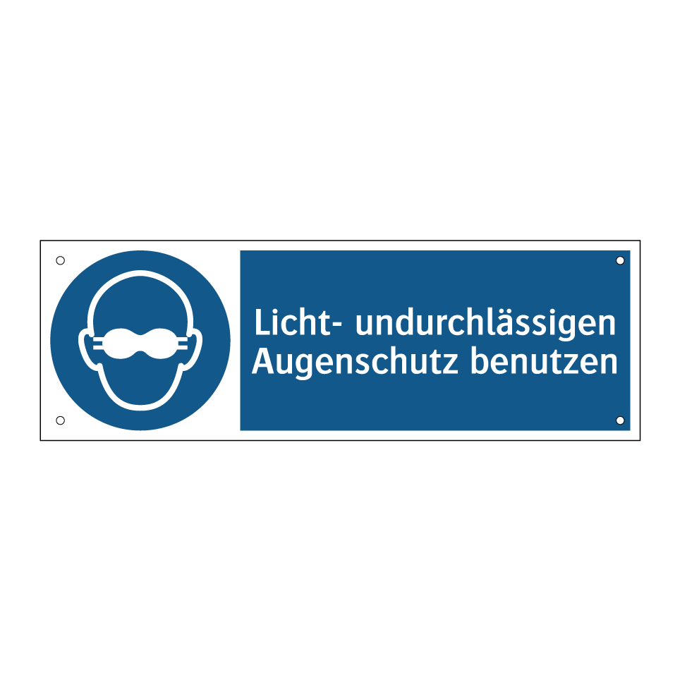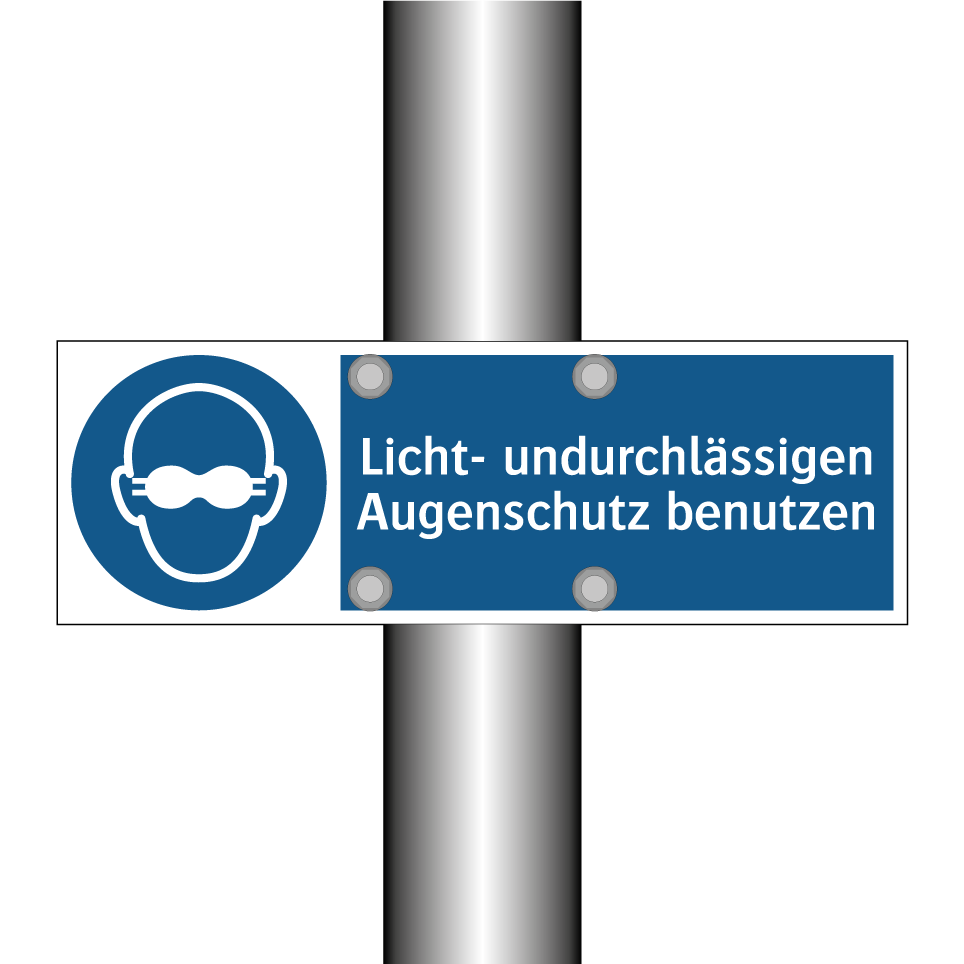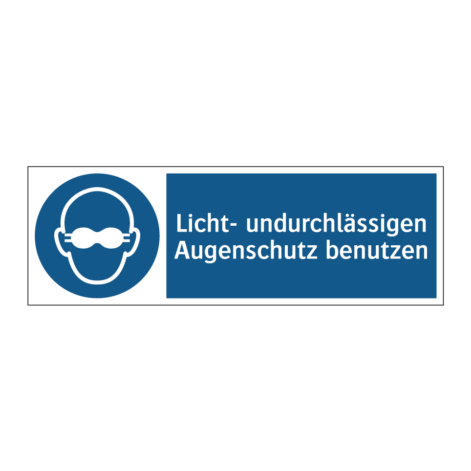 Gebotsschild mit dem Text Licht- undurchlässigen Augenschutz benutzen