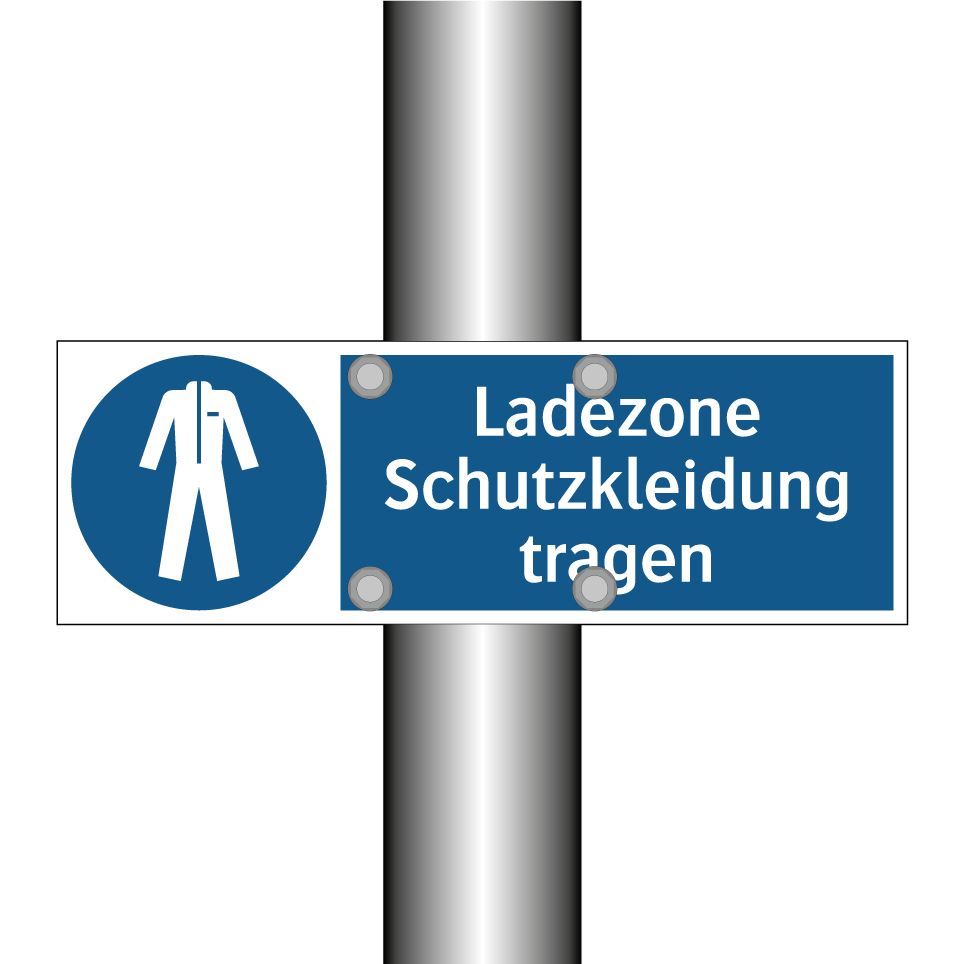 Gebotsschild mit dem Text Ladezone Schutzkleidung tragen
