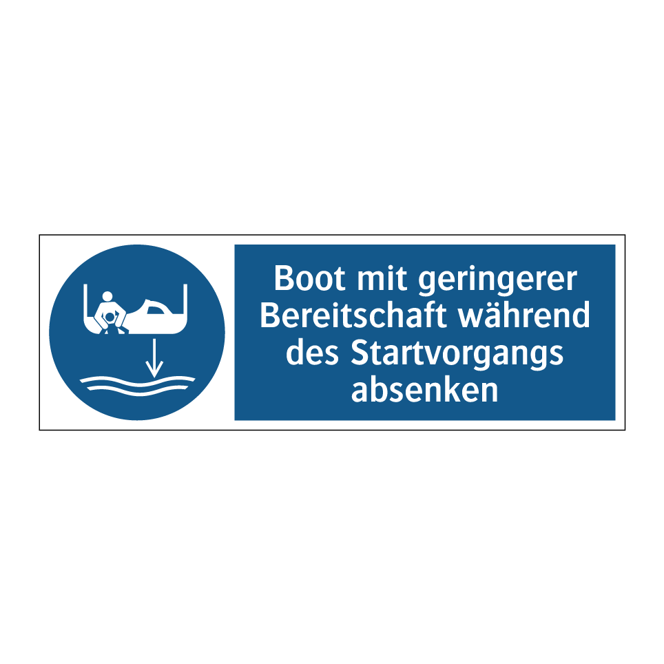 Gebotsschild mit dem Text Boot mit geringerer Bereitschaft während des Startvorgangs absenken
