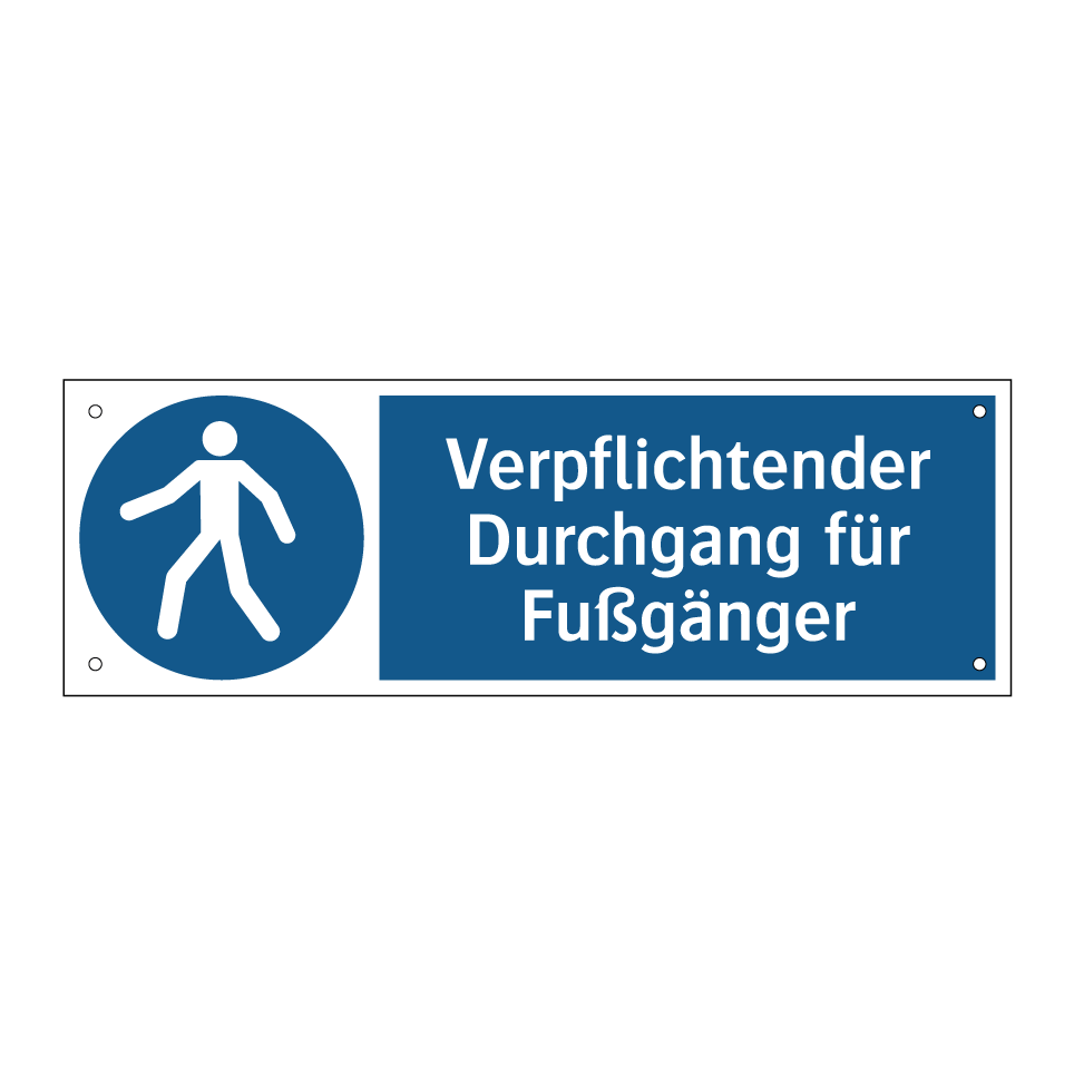 Diese Gebotsschild ist ein unverzichtbares Element für die Sicherheit in öffentlichen und privaten Bereichen. Mit ihrer klaren blauen Hintergrundfarbe und der auffälligen weißen Schrift signalisiert sie eindeutig den verpflichtenden Durchgang für Fußgänger. Ideal für den Einsatz in Einkaufszentren, Bürogebäuden, Schulen und anderen stark frequentierten Orten, sorgt sie dafür, dass Fußgänger sicher und geordnet geleitet werden. Diese Beschilderung ist besonders nützlich in Bereichen, in denen der Fußgängerverkehr geregelt werden muss, um Unfälle zu vermeiden und einen reibungslosen Ablauf zu gewährleisten. Setzen Sie diese Gebotsschild ein, um die Sicherheit und Ordnung in Ihrem Umfeld zu optimieren.