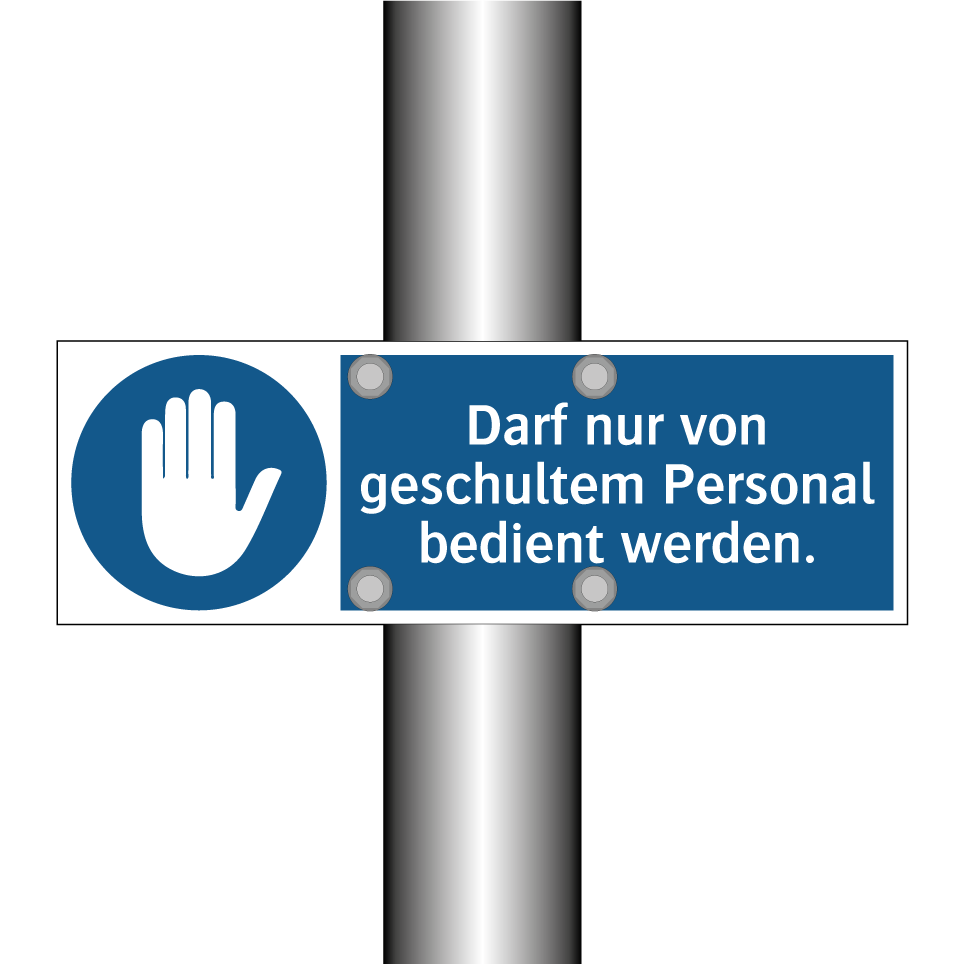Gebotsschild mit dem Text Darf nur von geschultem Personal bedient werden.