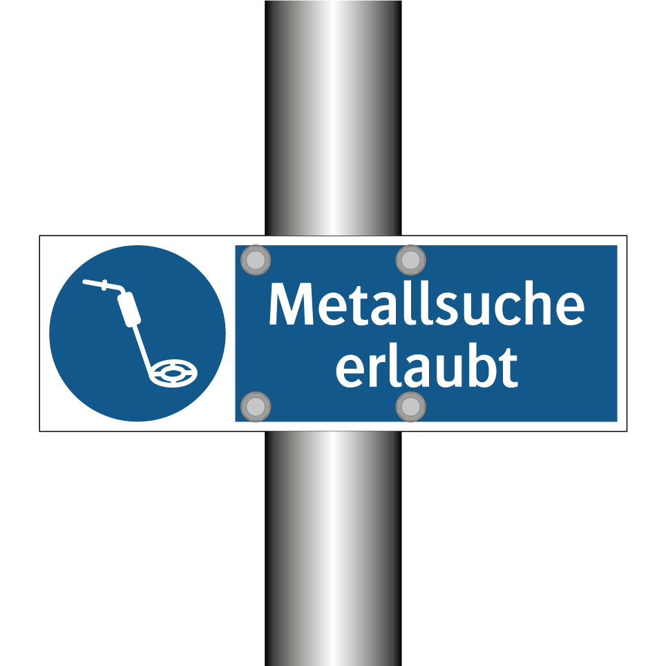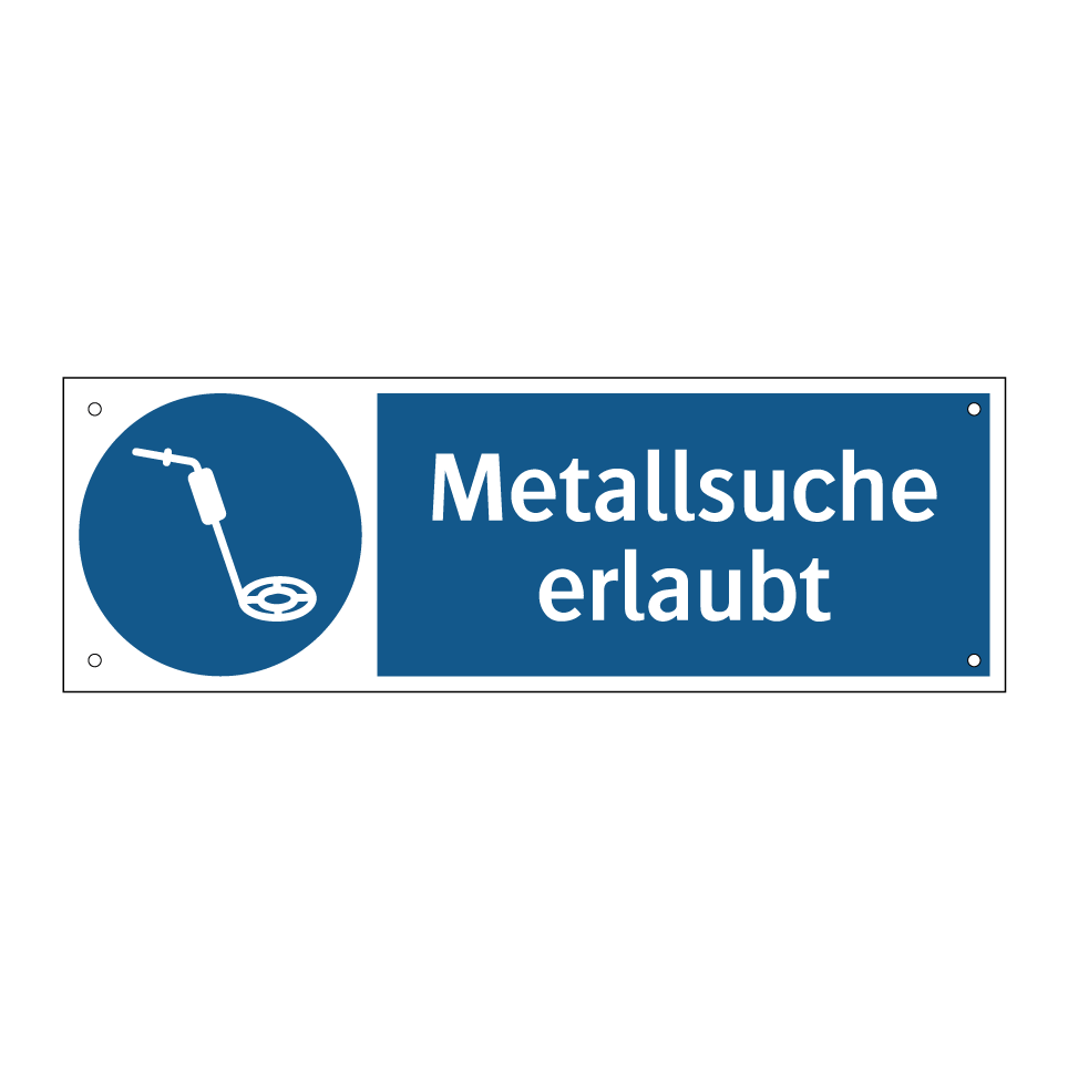 Gebotsschild mit dem Text Metallsuche erlaubt
