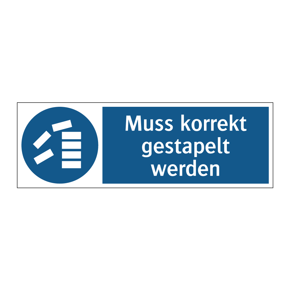 Gebotsschild mit dem Text Muss korrekt gestapelt werden