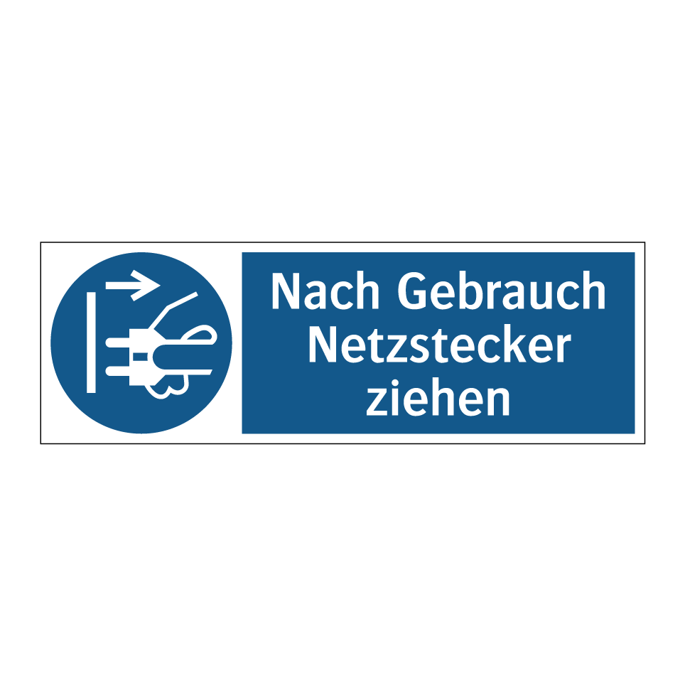 Gebotsschild mit dem Text Nach Gebrauch Netzstecker ziehen