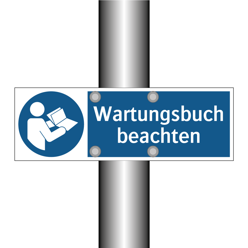 Gebotsschild mit dem Text Wartungsbuch beachten