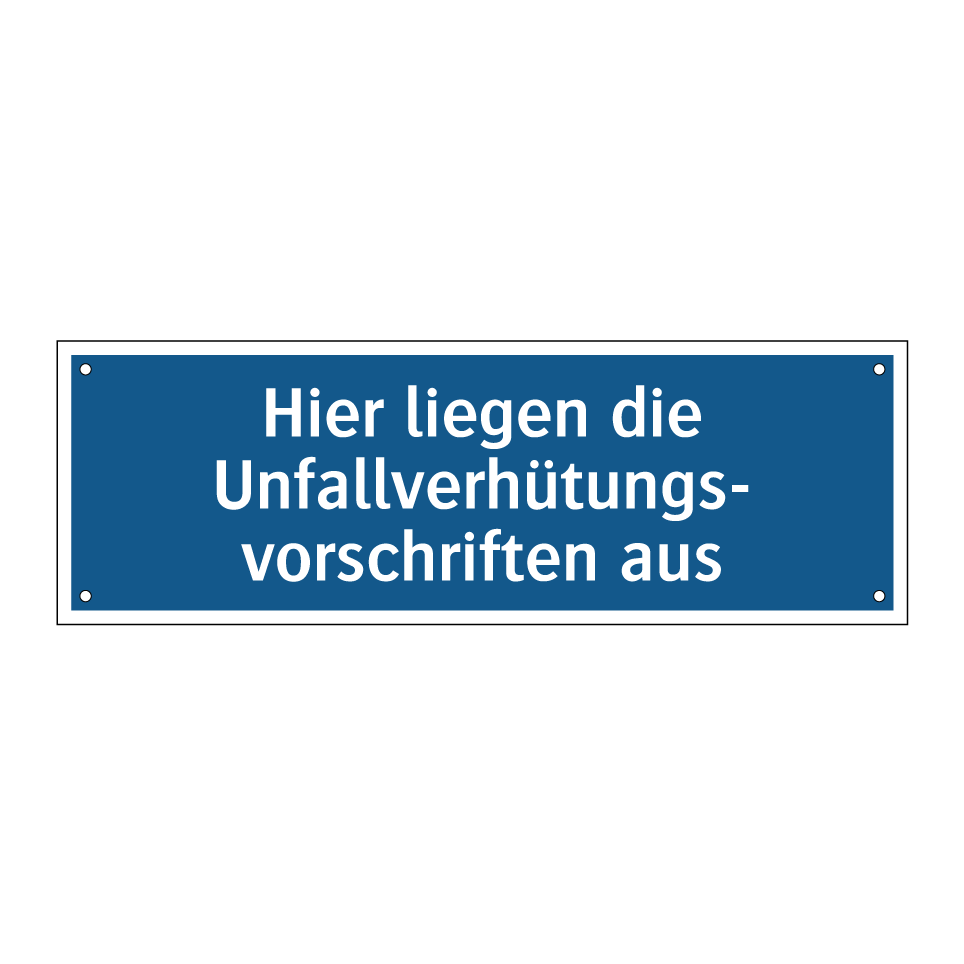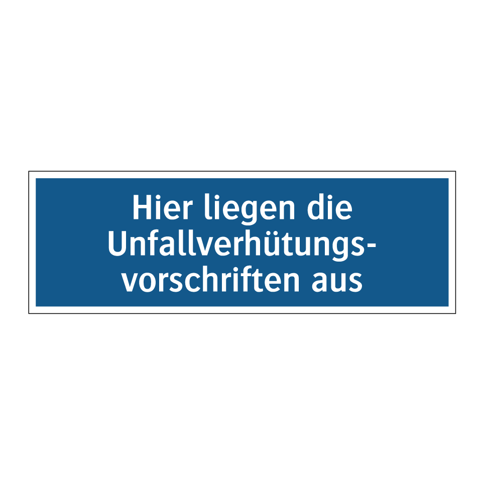 Gebotsschild mit dem Text Hier liegen die Unfallverhütungs- vorschriften aus