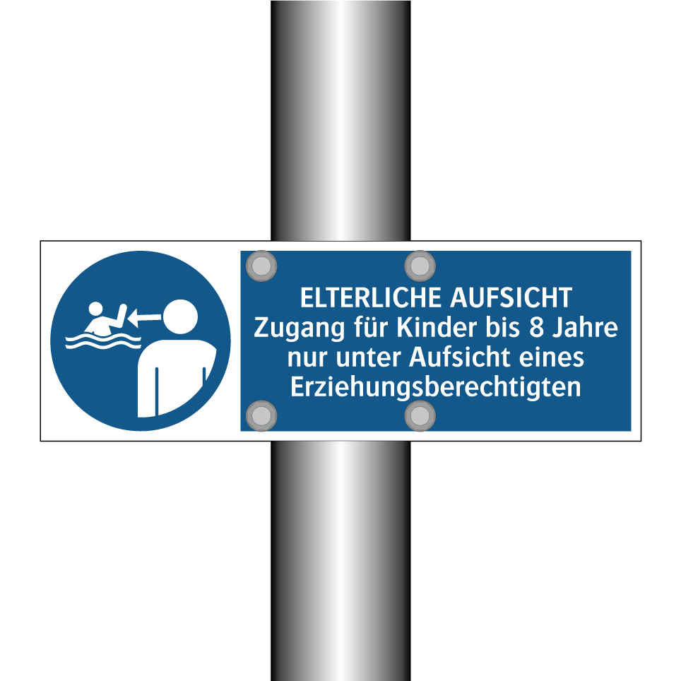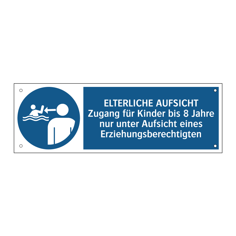 Gebotsschild mit dem Text ELTERLICHE AUFSICHT Zugang für Kinder bis 8 Jahre nur unter Aufsicht eines Erziehungsberechtigten