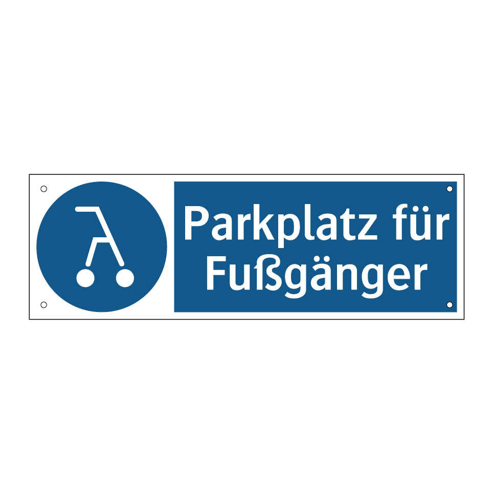 Gebotsschild mit dem Text Parkplatz für Fußgänger