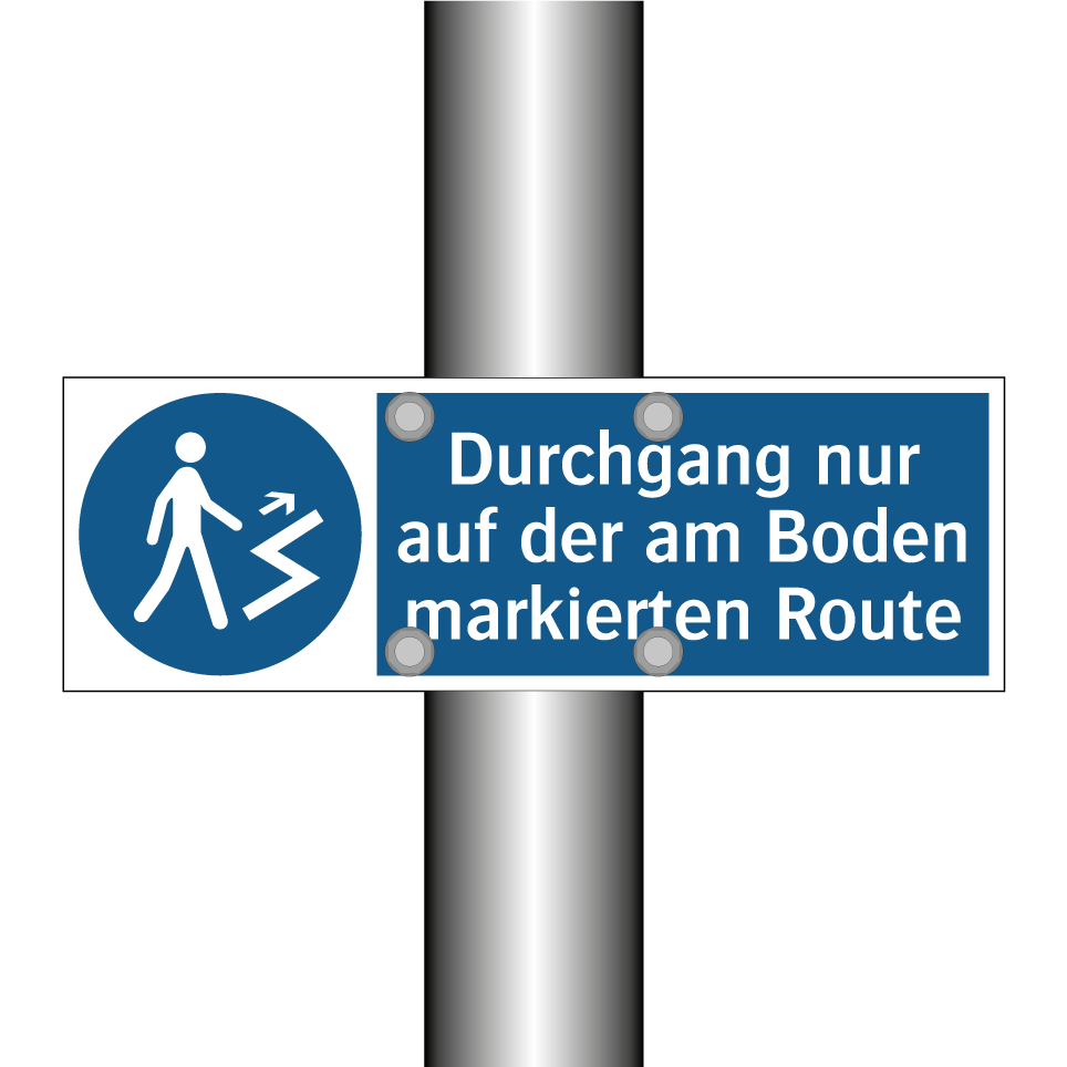 Diese Gebotsschild ist ideal für Bereiche, in denen ein sicherer und geordneter Durchgang gewährleistet werden muss. Mit ihrer klaren blauen Hintergrundfarbe und der auffälligen weißen Schrift sorgt sie dafür, dass Besucher und Mitarbeiter den vorgegebenen Weg einhalten. Diese Beschilderung eignet sich hervorragend für den Einsatz in Fabriken, Lagerhäusern oder anderen industriellen Umgebungen, wo es wichtig ist, den Verkehrsfluss zu steuern und Unfälle zu vermeiden. Platzieren Sie die Gebotsschild an strategischen Punkten, um sicherzustellen, dass der markierte Weg auf dem Boden befolgt wird. Sie ist ein unverzichtbares Element für die Sicherheit und Organisation in jedem Arbeitsumfeld.