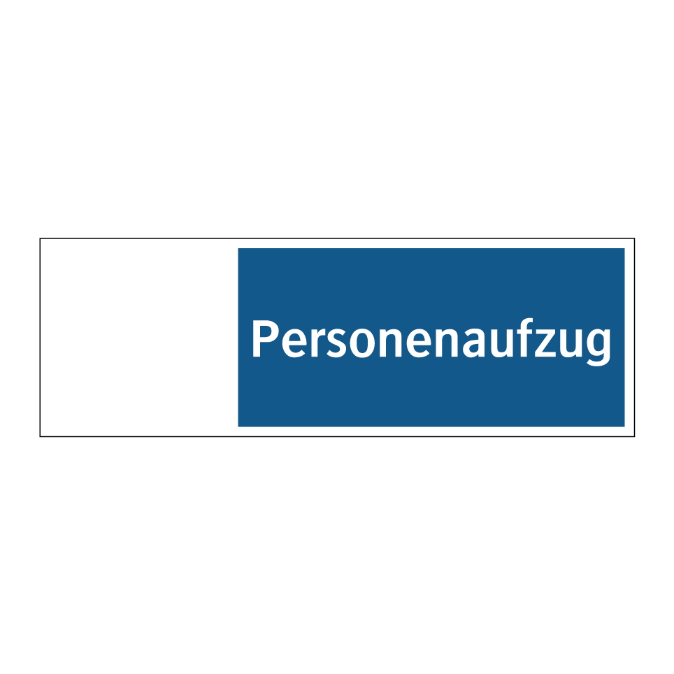 Entdecken Sie die vielseitige Anwendungsmöglichkeit dieser Gebotsschild mit blauem Hintergrund und weißer Schrift. Diese Gebotsschild ist ideal für den Einsatz in Gebäuden, in denen ein Personenaufzug vorhanden ist. Sie dient dazu, Besucher und Mitarbeiter darauf hinzuweisen, dass ein Aufzug für den Personentransport zur Verfügung steht. Platzieren Sie diese Gebotsschild in der Nähe von Aufzugstüren, in Eingangsbereichen oder an strategischen Punkten innerhalb des Gebäudes, um die Sichtbarkeit zu maximieren. Diese visuelle Erinnerung sorgt für eine klare Kommunikation und trägt zur Sicherheit und Orientierung in Ihrem Gebäude bei.